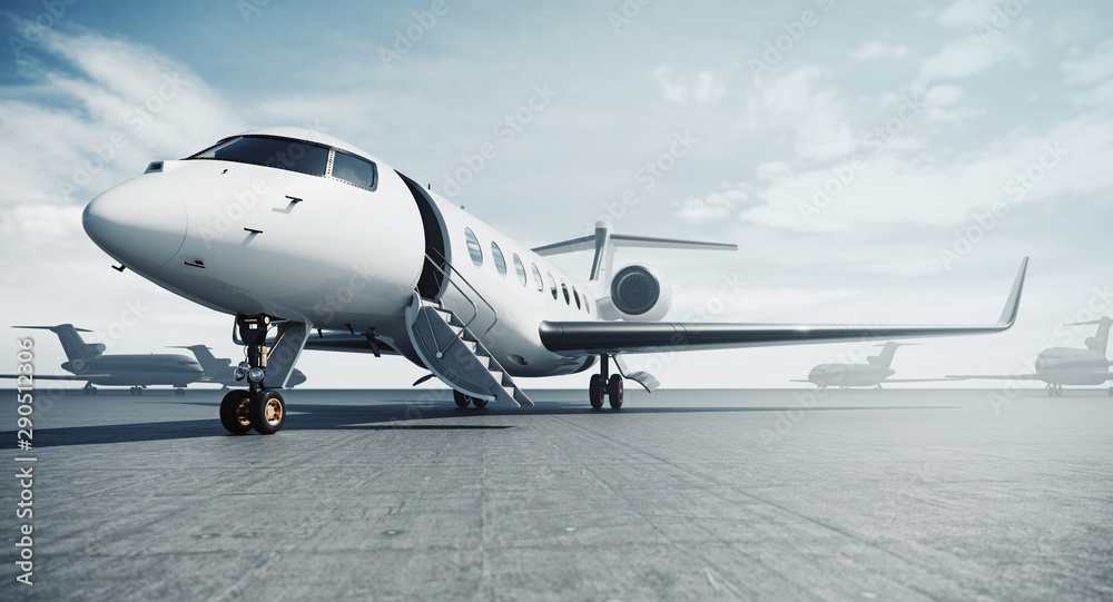 Fotografie Business private jet airplane parked at airfield and ready for flight