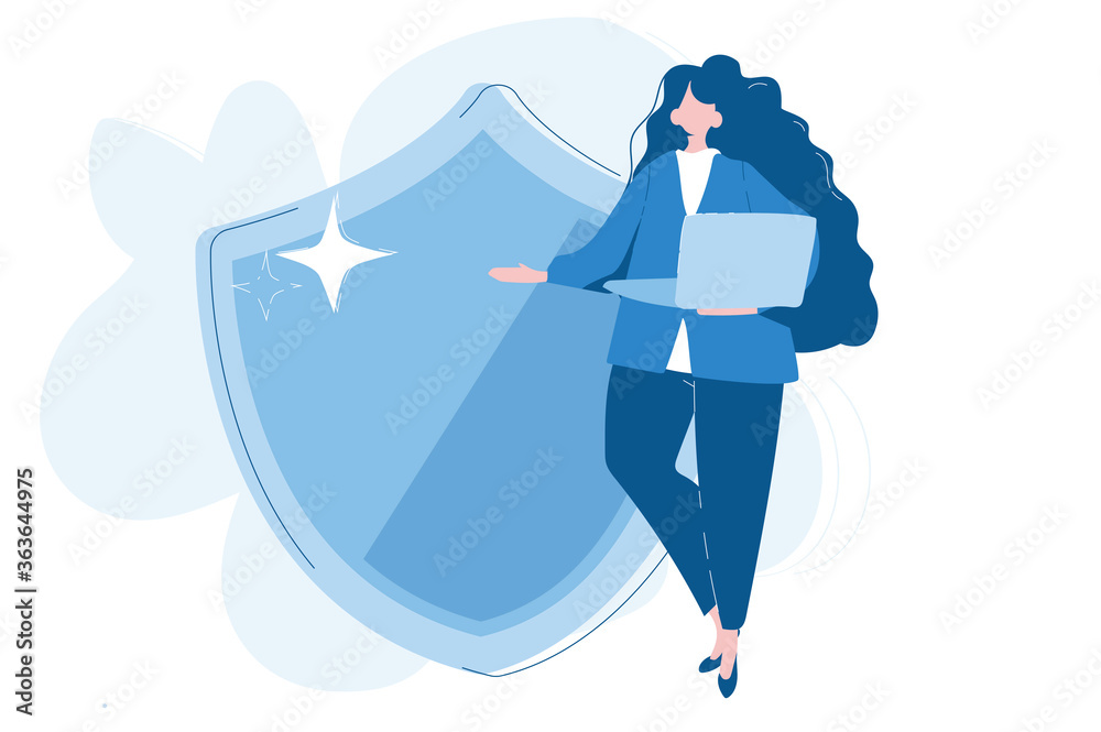 Fotografie Business woman, shield, security, Vector illustration for web banner, infographics, mobile
