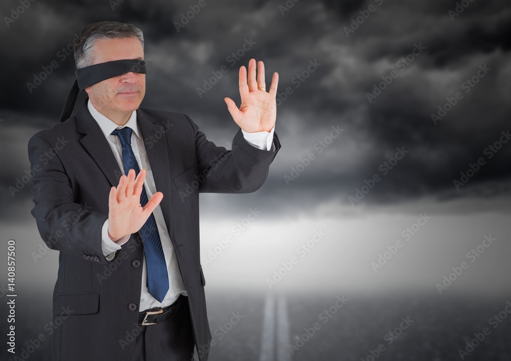 Fotografie Businessman in blindfold against storm cloud