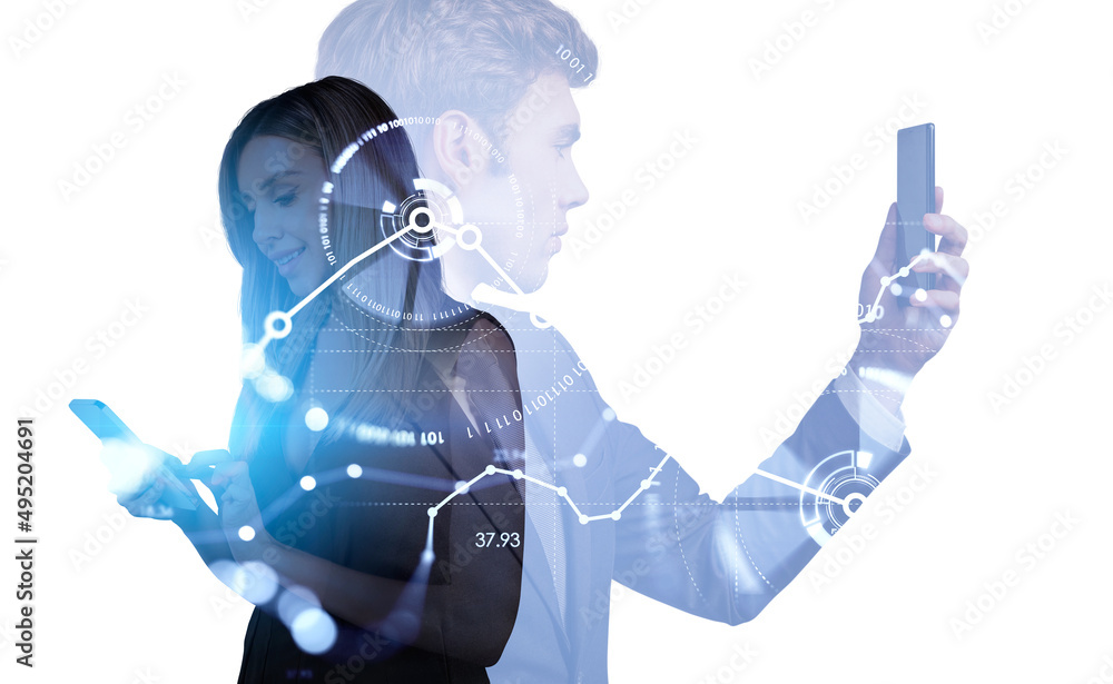 Fotografie Businesswoman and handsome businessman wearing formal wear are h