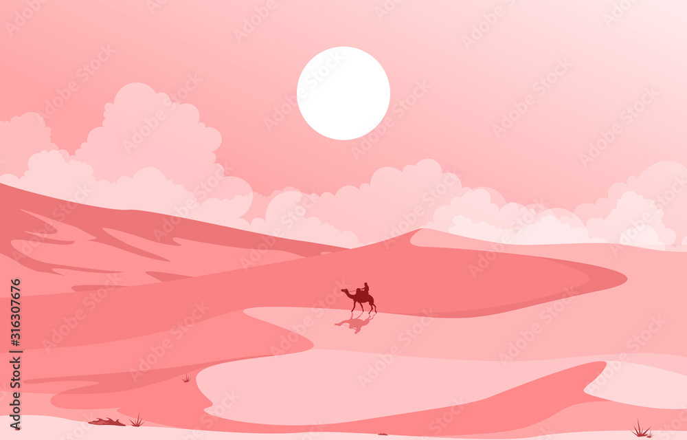Obraz na plátně Camel Rider Crossing Vast Desert Hill Arabian Landscape Illustration