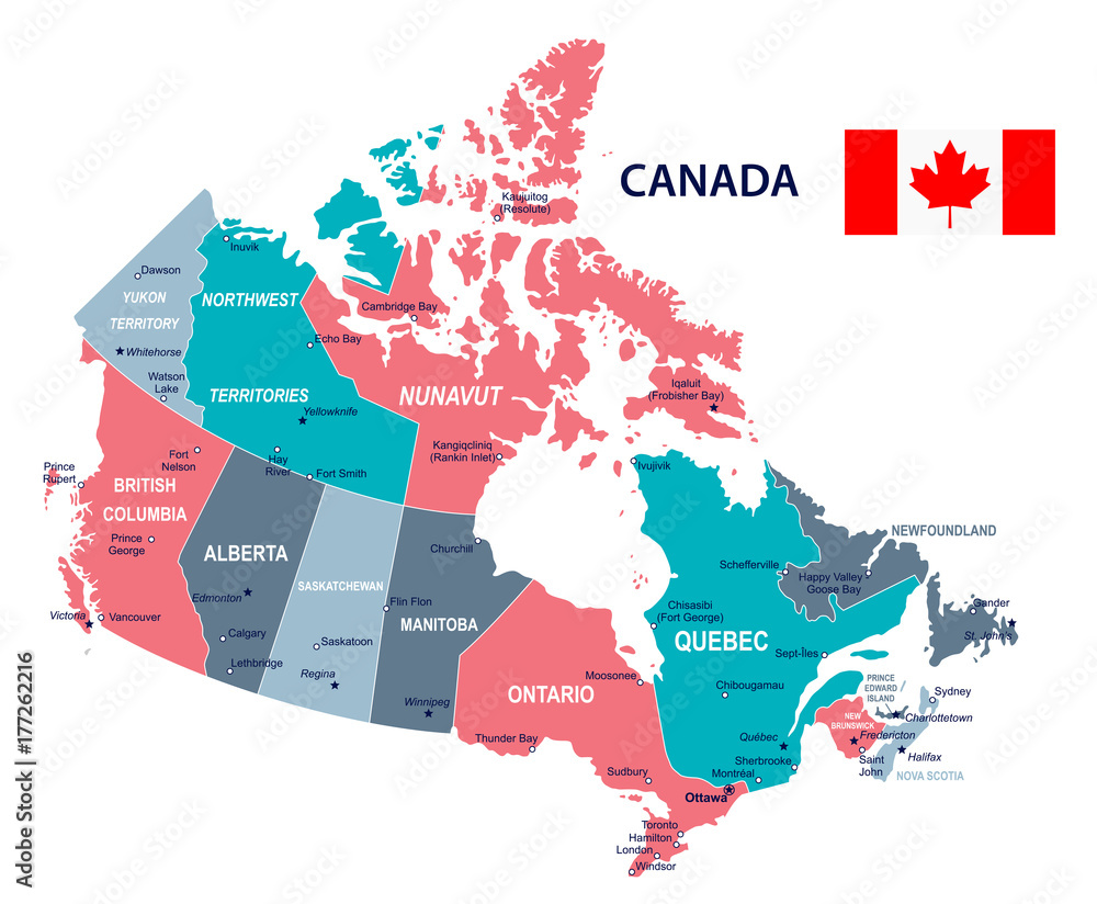 Obraz na plátně Canada - map and flag illustration