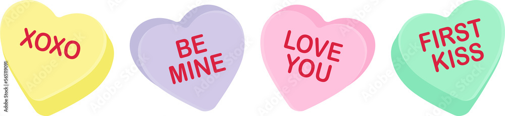 Fotografie Candy heart sayings, sweethearts, valentines day sweets, sugar food message of l