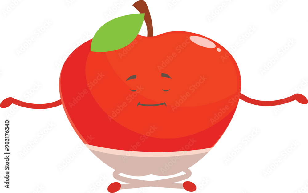 Fotografie Cartoon apple practicing yoga, healthy lifestyle and fitness concept