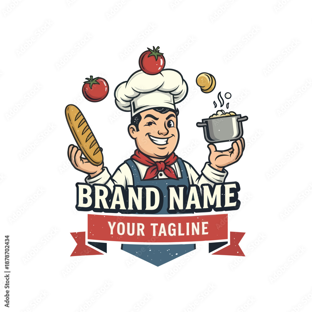 Fotografie Cartoon Chef Holding Bread and Pot.