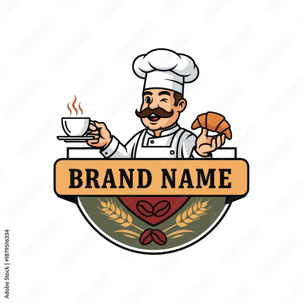 Fotografie Cartoon Chef Holding Coffee and Mushroom.
