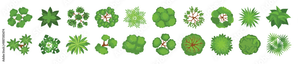 Fotografie cartoon top view trees plants bushes for landscaping