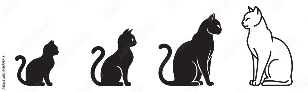 Fotografie Cat Kitten Pet Kitty Silhouette Vector Symbol Icon Collection Set