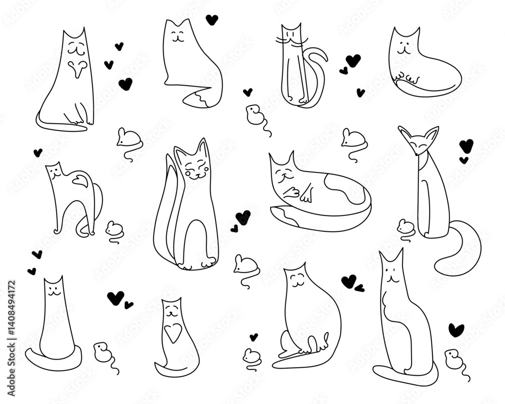 Obraz na plátně cats and mice doodle set