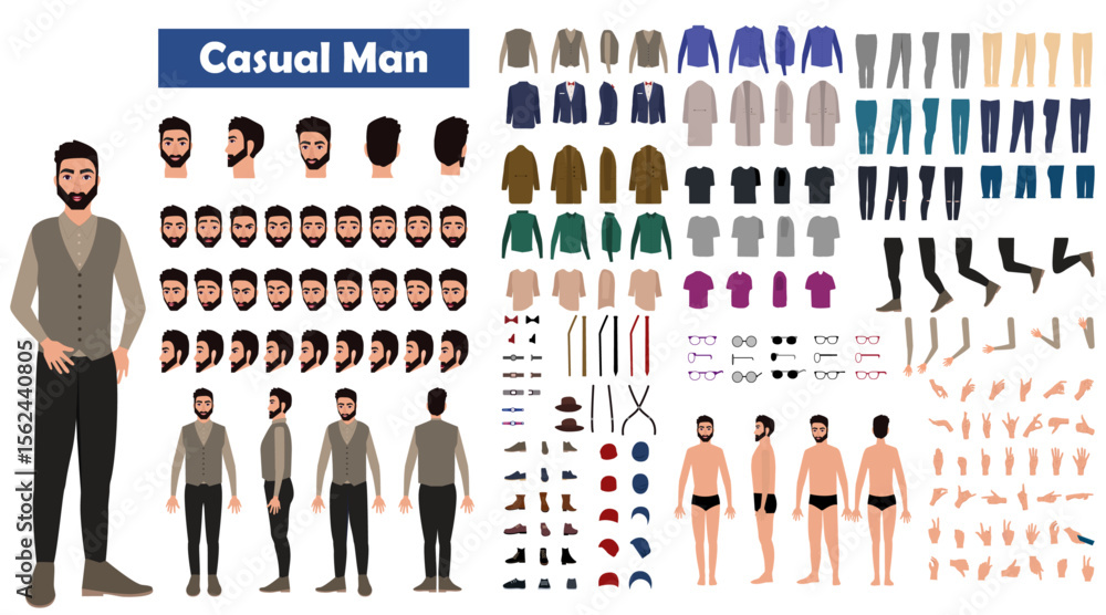 Fotografie causal man Cartoon man character constructor sets for full body and head rigging