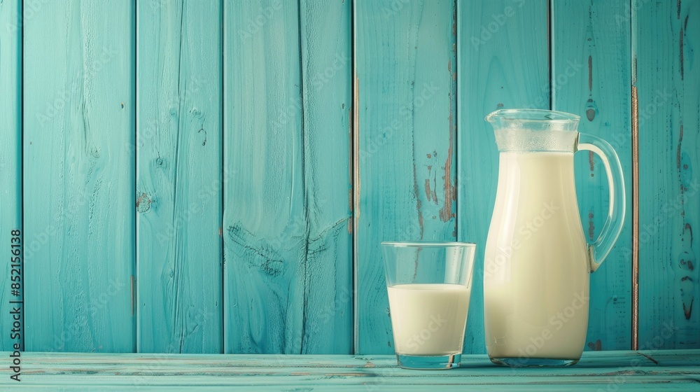 Fotografie Celebrate World Milk Day with a picturesque scene featuring a glass jug of milk