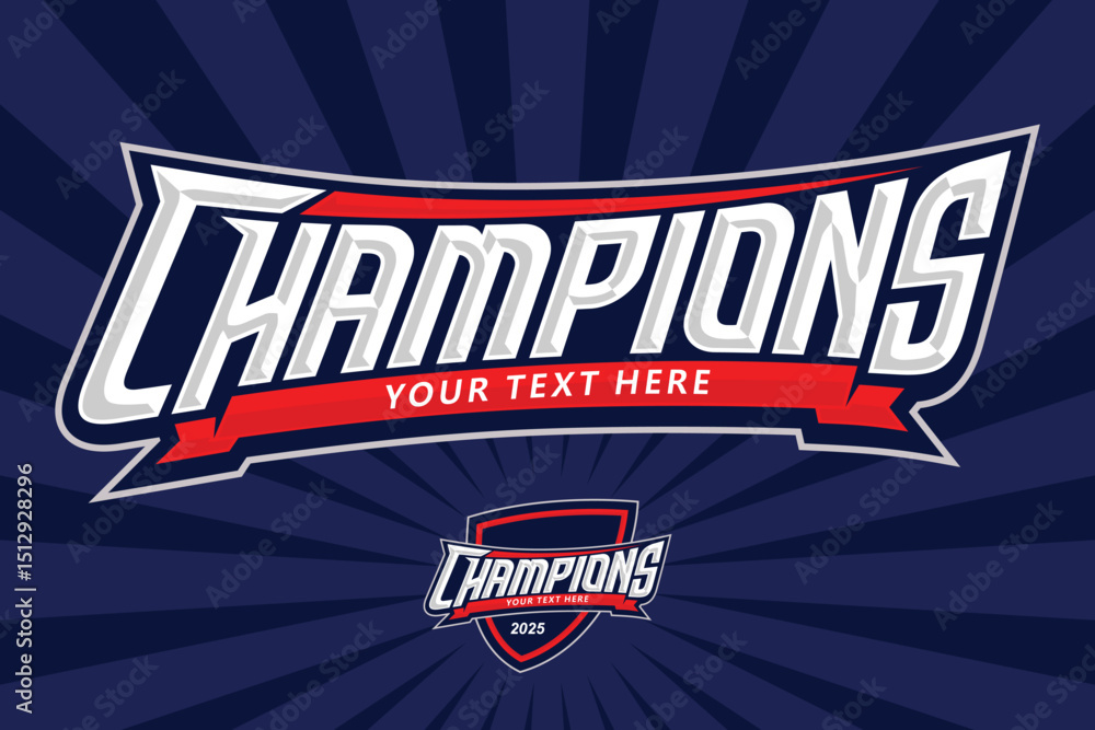 Fotografie Champions Typography Champions Text Typography With Shield Vector Stock, For Th