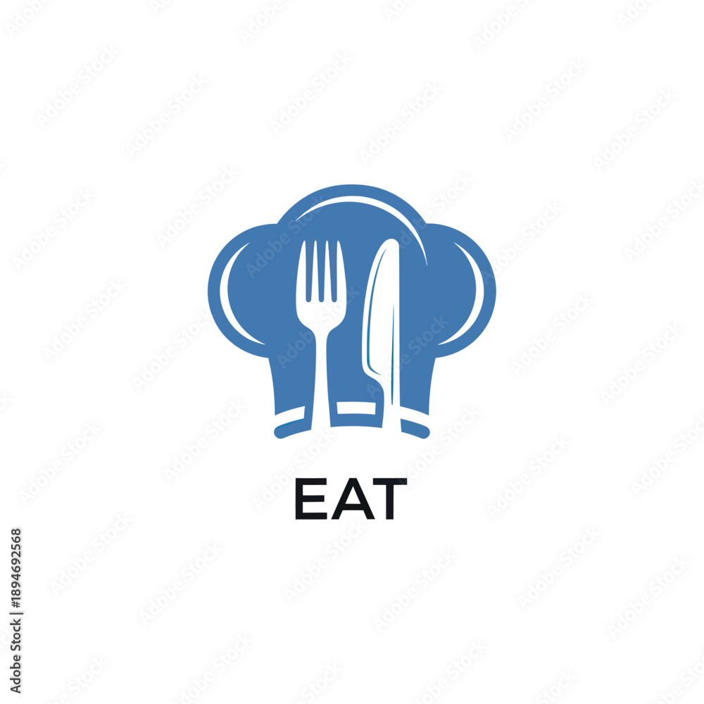 Fotografie Chef Hat with Fork and Knife Symbol.