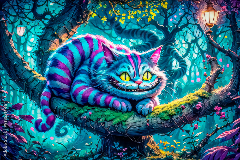 Fotografie Cheshire Mysterious cat in the forest. Fantasy illustration