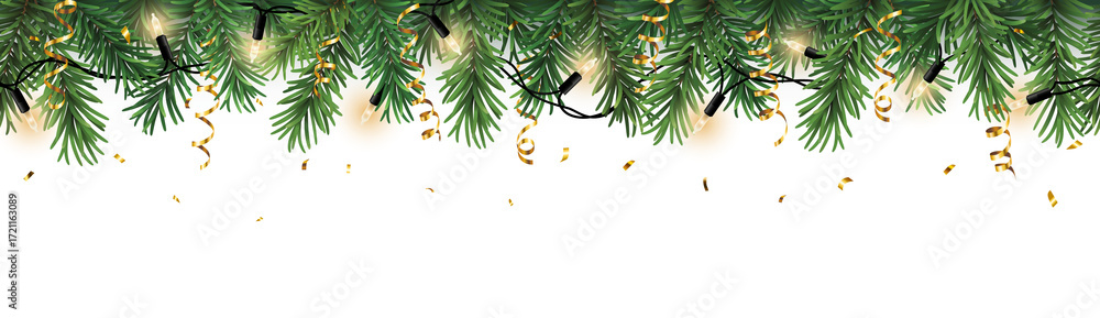 Fotografie Christmas decorative seamless border with realistic coniferous branches, christm