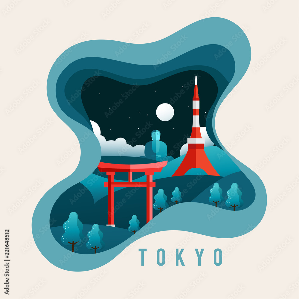 Fotografie City Scene in Paper Cut Style : Tokyo : Vector Illustration
