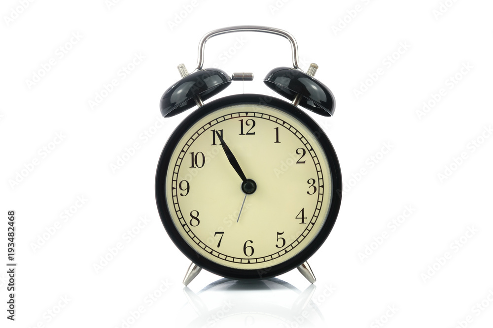 Fotografie Classical retro alarm clock isolated on a white background in close-up
