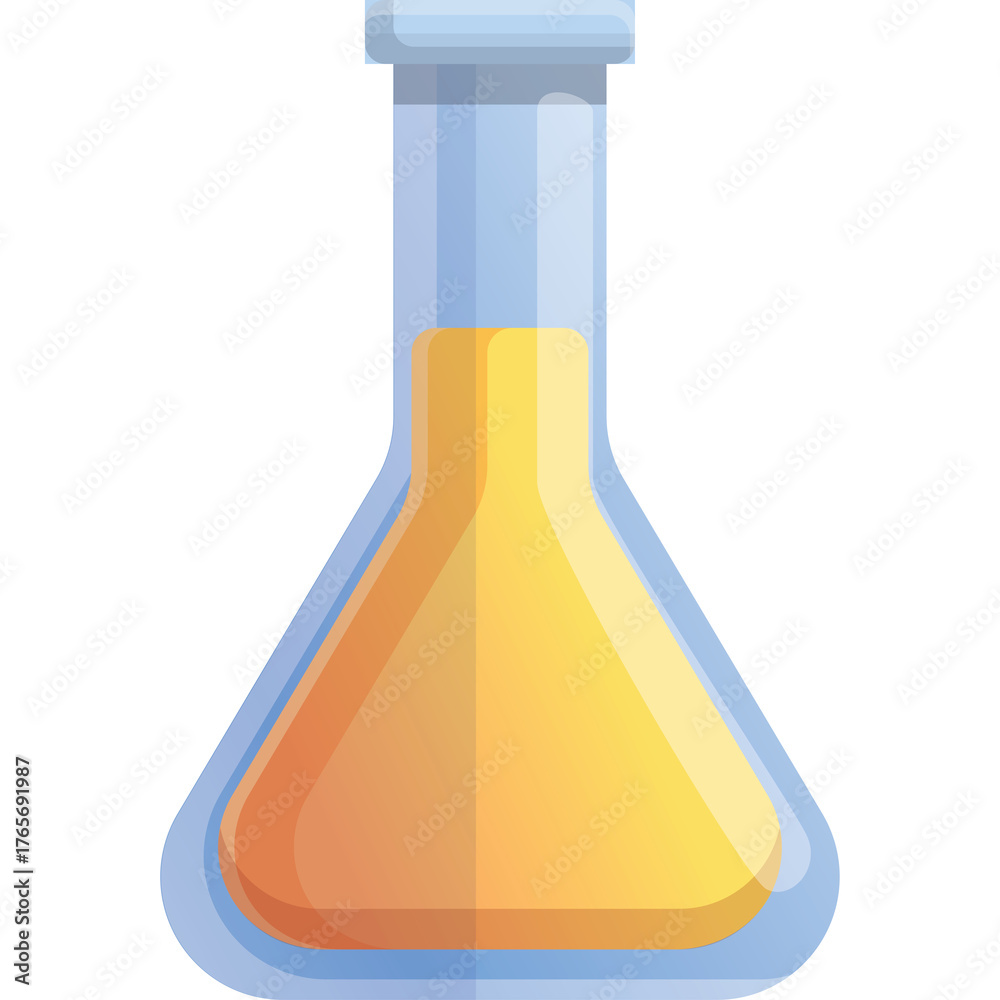 Fotografie Clear Glass Erlenmeyer Flask with Yellow Liquid and Blue Rim on Transparent Back