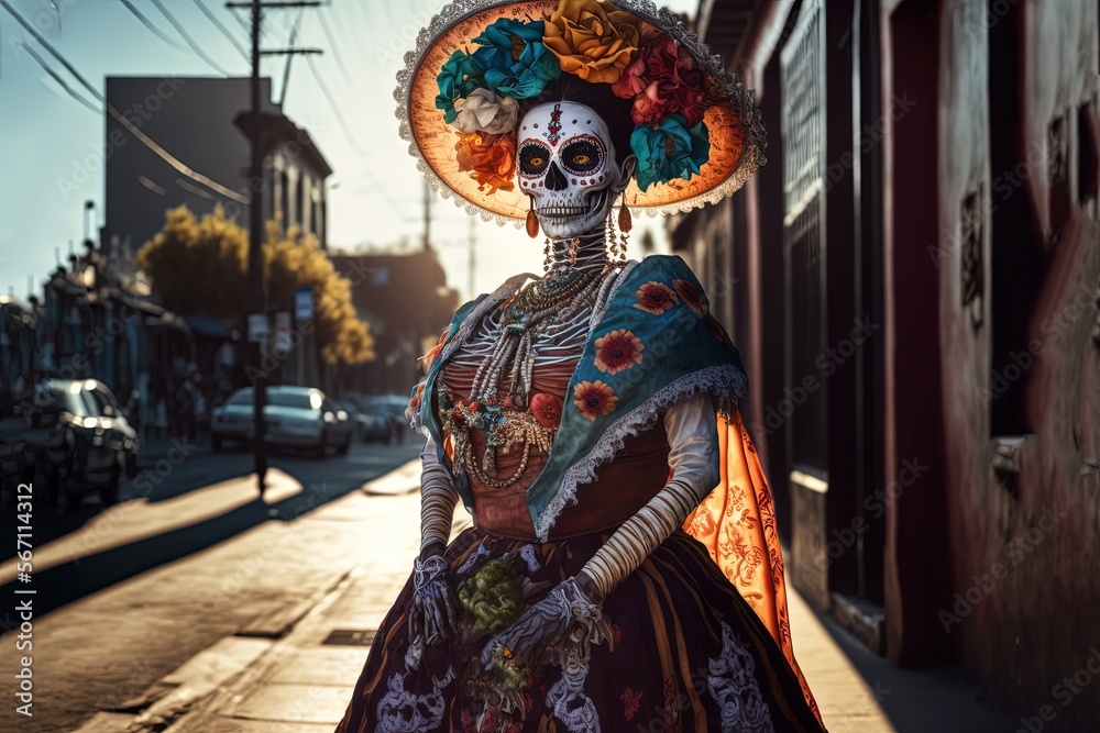 Fotografie close up beautiful woman wearing skull make up during Day of Dead festival, Day