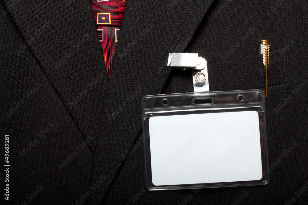 Fotografie close up of blank id card on man's suit
