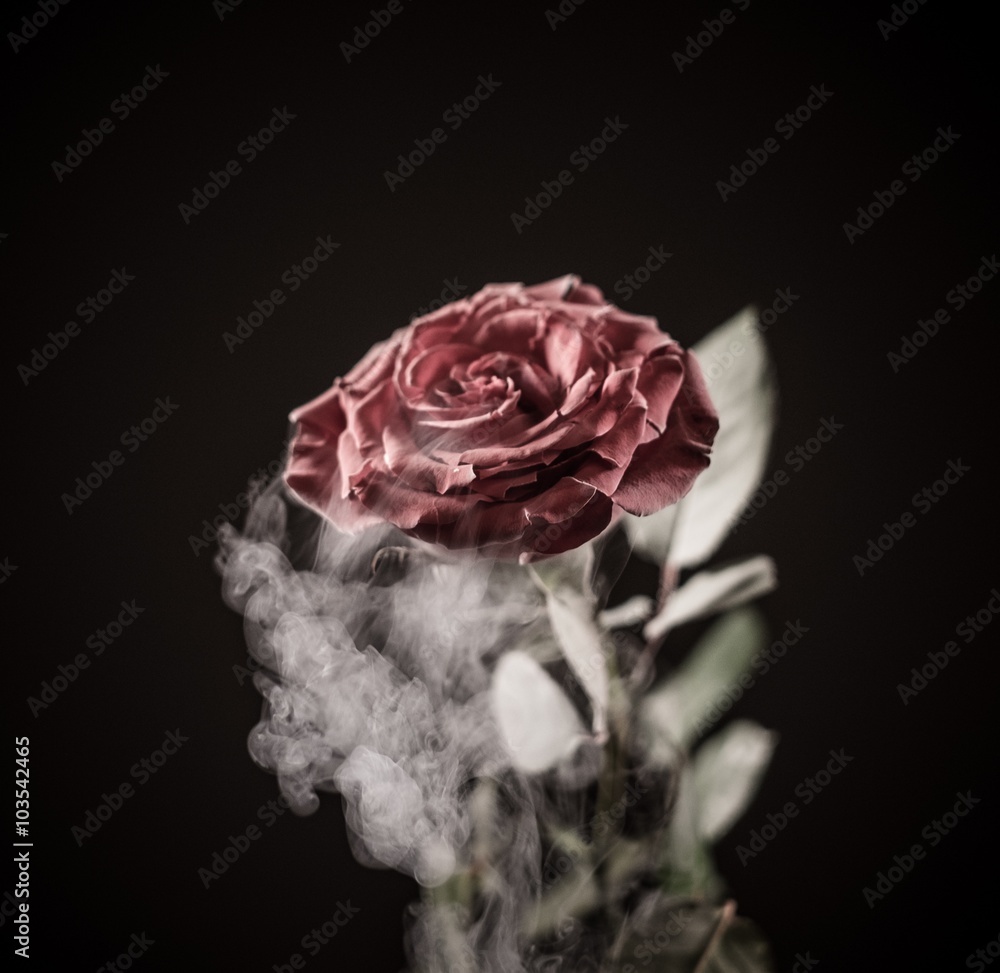 Obraz na plátně Close up of frozen red rose isolated on black.