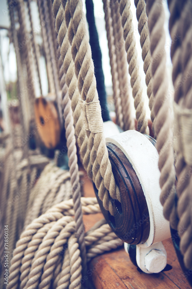 Fotografie Close Up of Historical Ship Ropes and Rigging