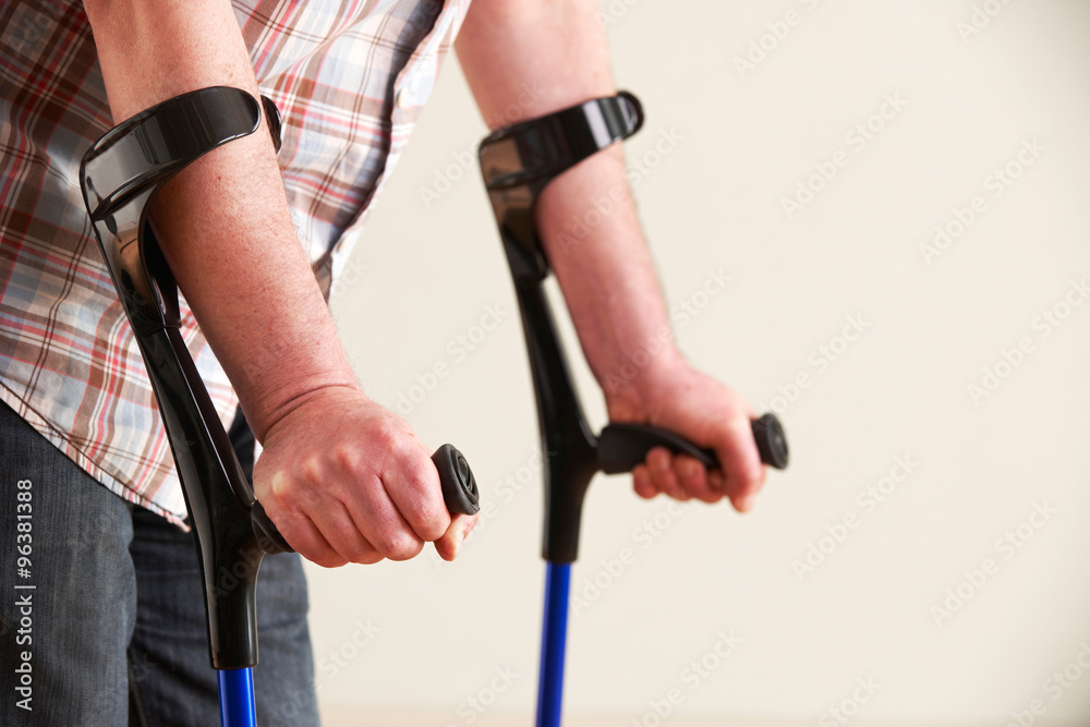 Fotografie Close Up Of Man Using Crutches