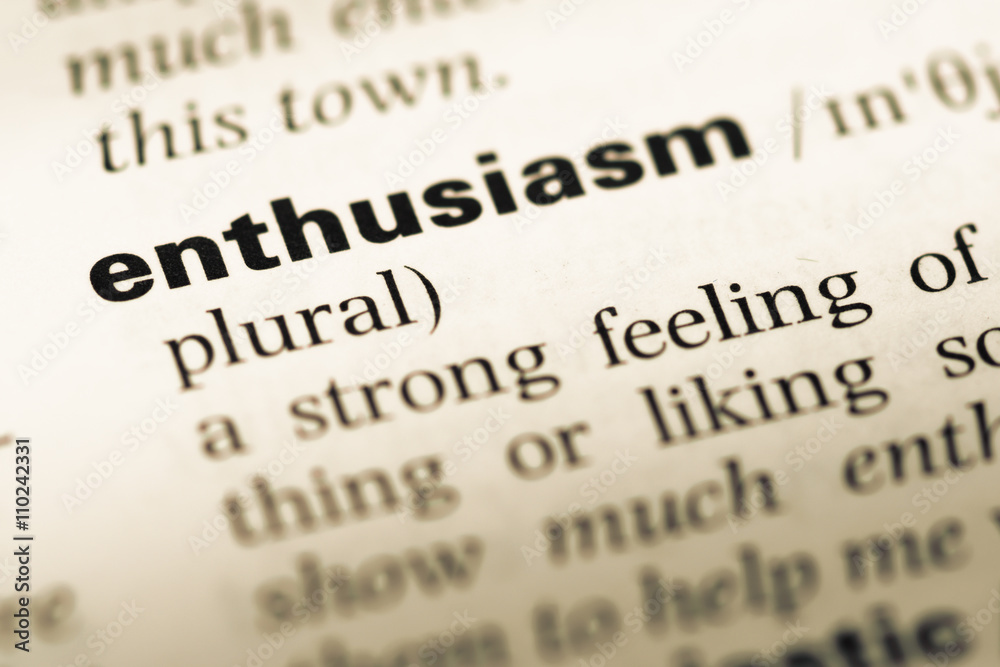 Obraz na plátně Close up of old English dictionary page with word enthusiasm