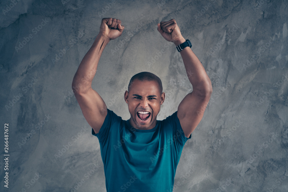 Fotografie Close up photo amazing stunning he him his dark skin macho handsome hands arms f