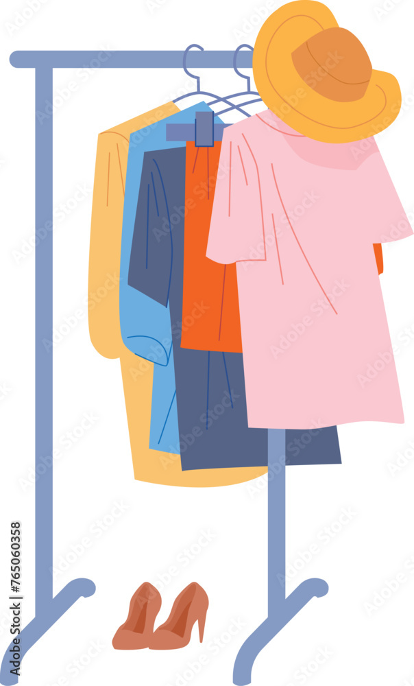Fotografie Clothing hanger. Fashion wear racks. Casual closet