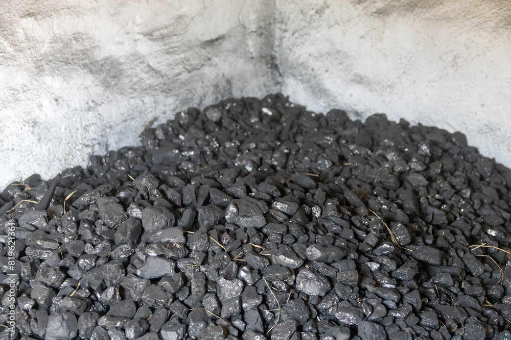 Fotografie Coal is dumped in a coal warehouse