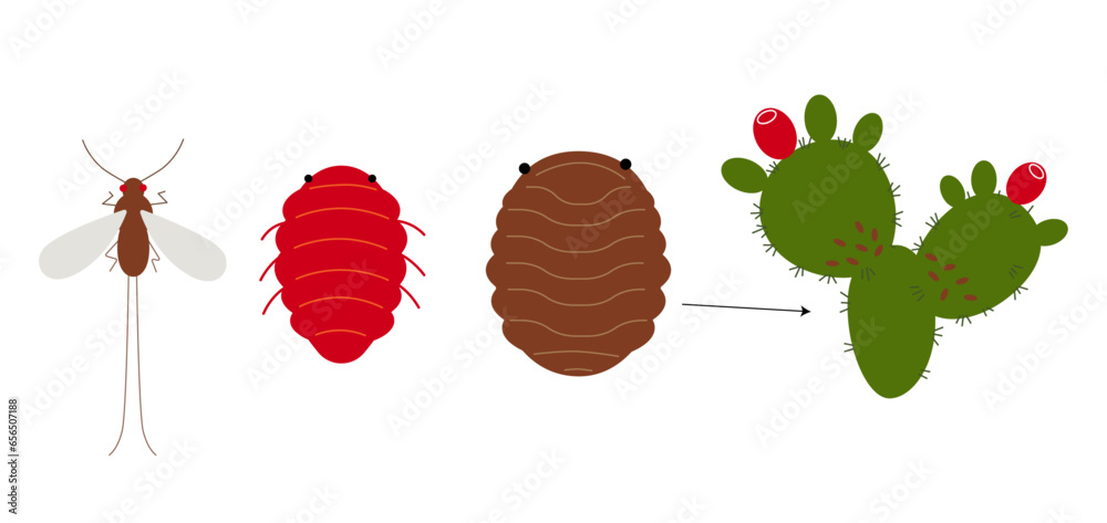 Fotografie Cochineal (Dactylopius coccus) insect on the cactus