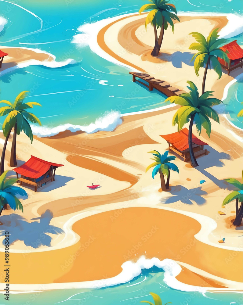 Fotografie Coconut trees on golden sand seamless wallpaper pattern design