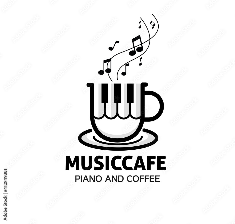 Fotografie Coffee Music Cup logo design inspiration, piano and coffee vector, Technology an