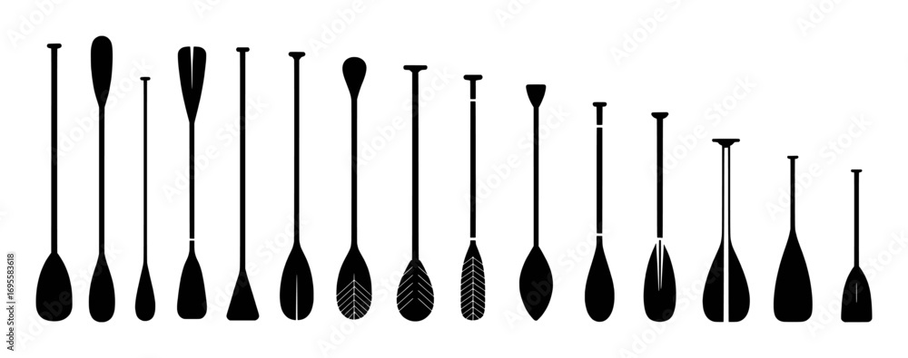 Fotografie Collection of Black Paddles and Oars on White Background