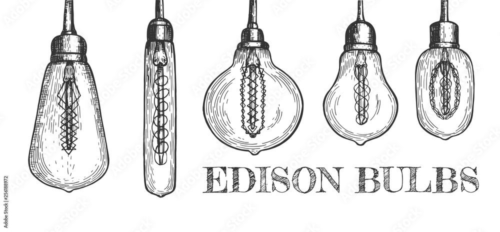Fotografie Collection of various shaped hanging edison bulbs