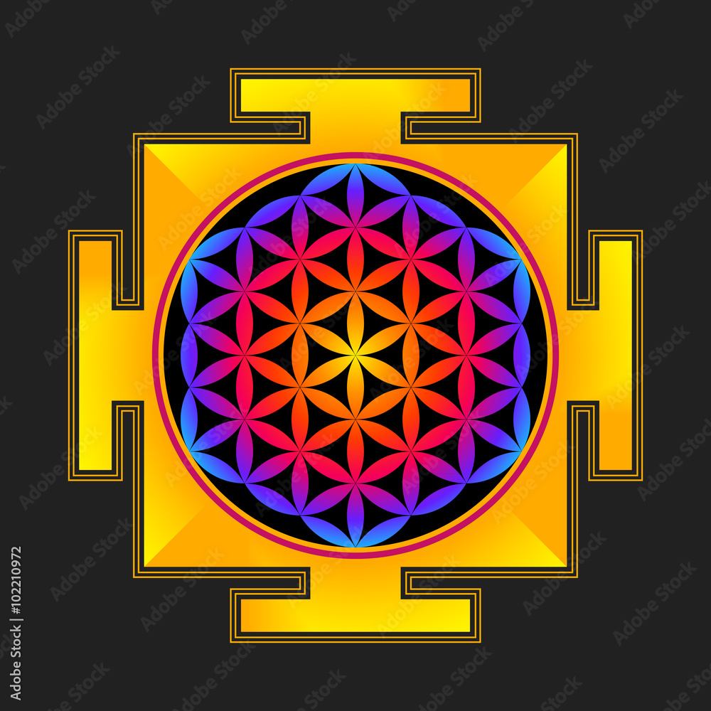 Obraz na plátně colored flower of life yantra illustration.