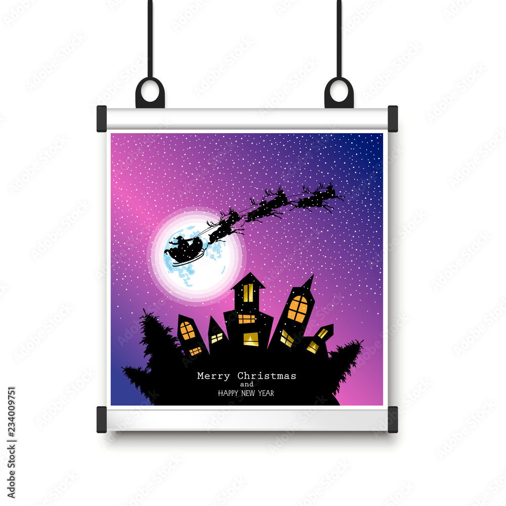 Fotografie colorful Christmas poster on suspensions. Santa on reindeer