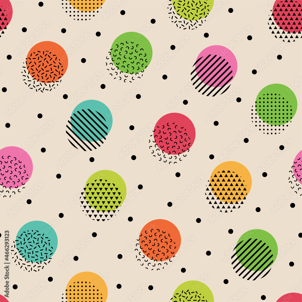 Fototapeta Colorful dot pattern with geometric elements seamless vector