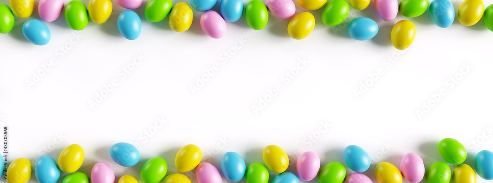Obraz na plátně Colorful easter eggs border on white background with a large copy space