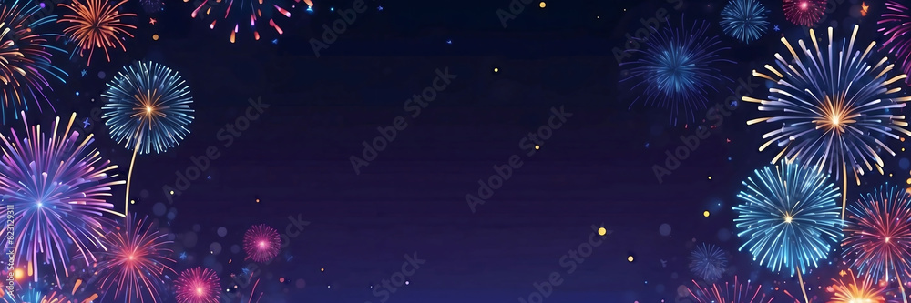 Fotografie Colorful fireworks with wide dark copy space on New Year's Eve , 4th of July