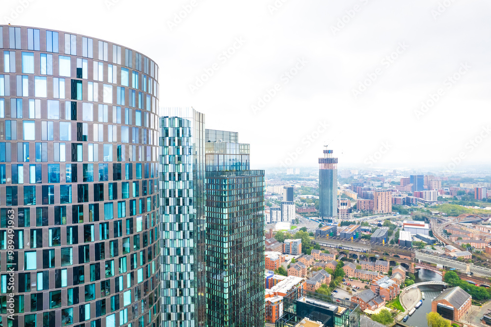 Fotografie Commercial area, highrise tower office building in Deansgate Manchester, overcas