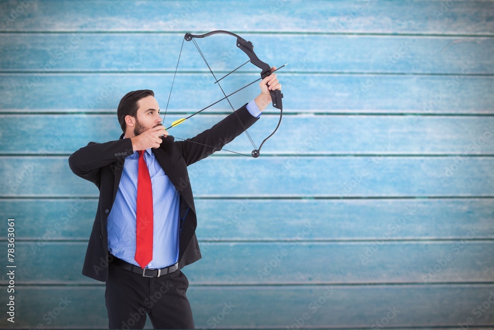 Fotografie Composite image of focused businessman shooting a bow and arrow