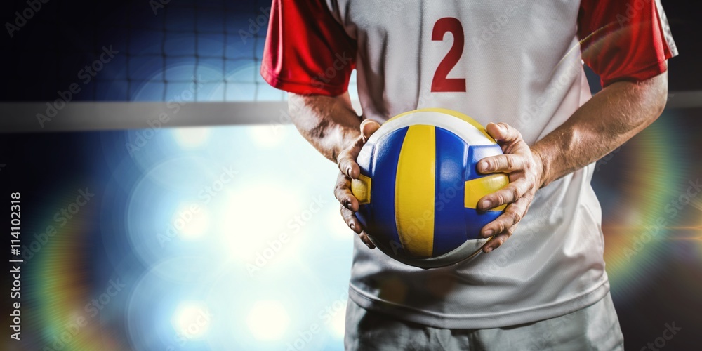 Composite image of sportsman holding a volleyball