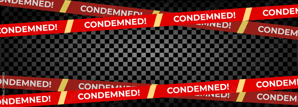 Fotografie Condemned warning tapes background frame, red caution border on dark checkerboard