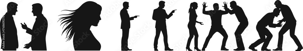 Fotografie Conflict silhouette series, emotional interaction vector, argument and confronta
