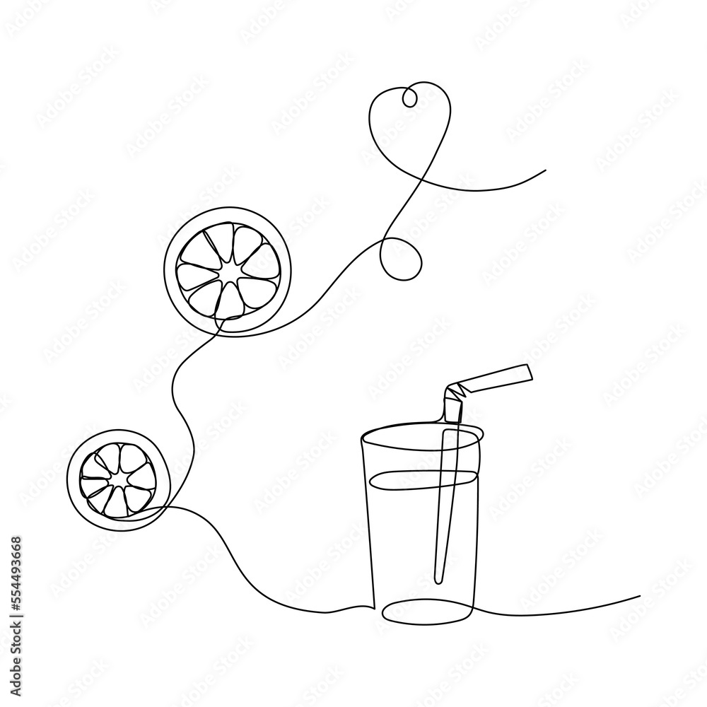 Fotografie Continuous one line drawing of lemonade, ice tea with lemon