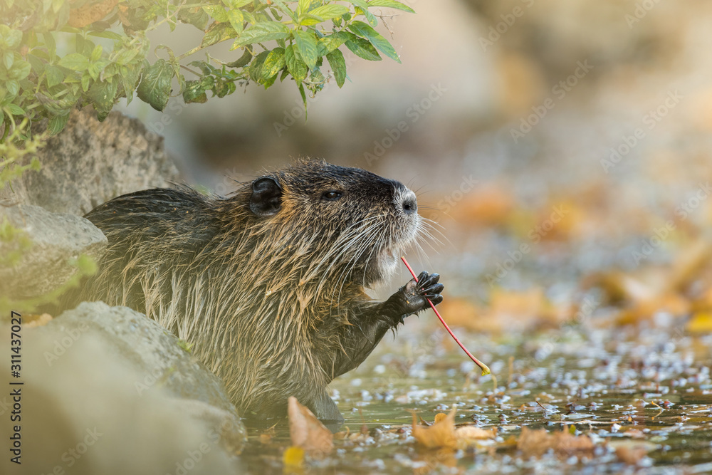 Fotografie Coypu in the natural environment, Europe, close up, city park, Myocastor coypus