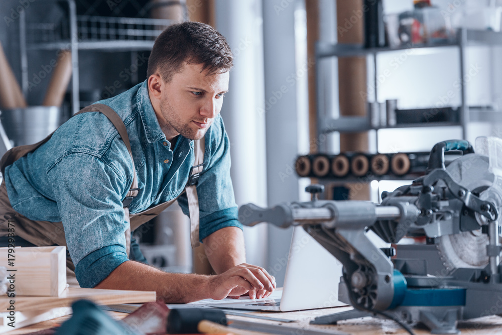 Obraz na plátně Creative furniture craftsman using technology