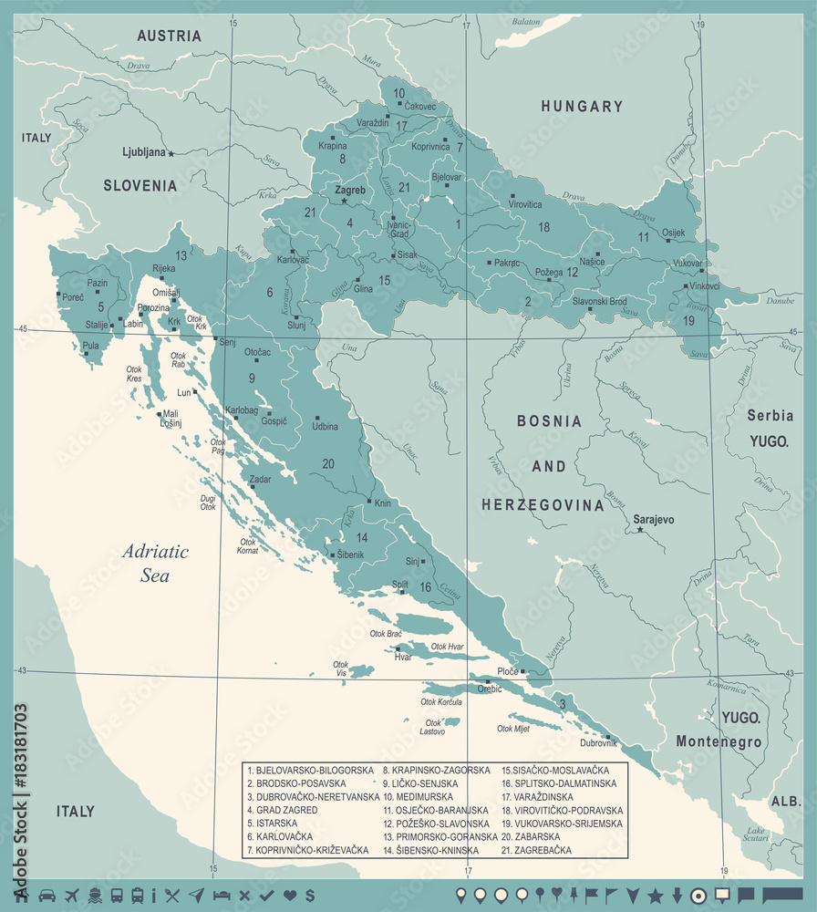 Obraz na plátně Croatia Map - Vintage Detailed Vector Illustration